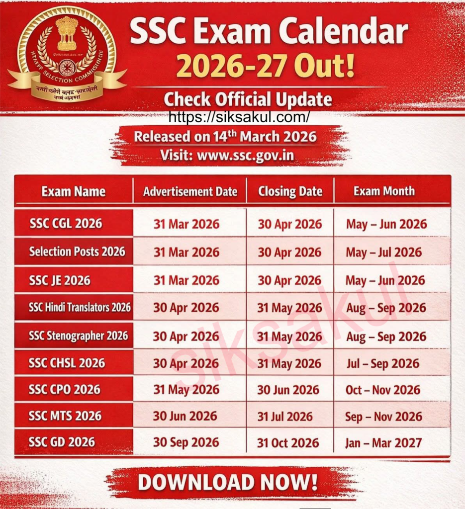 প্রার্থীরা SSC-এর অফিসিয়াল ওয়েবসাইটে গিয়ে SSC Tentative Exam Calendar 2026–2027 PDF ডাউনলোড করতে পারবেন।